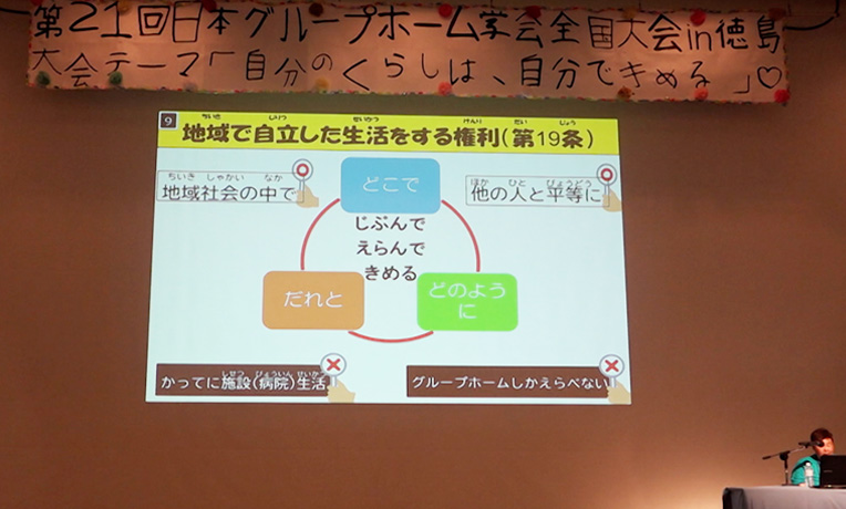 徳島県の知的障害のある人たちが中心になって開いた、日本グループホーム学会の全国大会。その中で語られたのは「だいきぼグループホームはいやだ」「自分で決める、自分のくらし」。