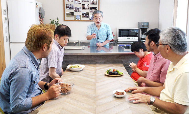 「体にやさしいものを持って集まれ!!」みんなが持ってきたのは、自分たちで作っている食べ物。酵素玄米、梅干し、米粉パン、そして、無農薬の野菜。これで何ができるの?