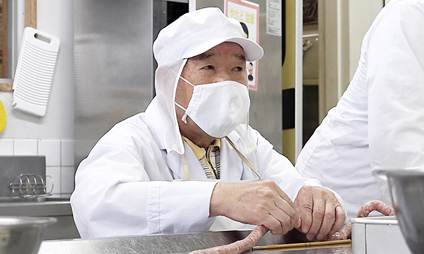 お客さんがてまりずし作りにちょうせん。思い思いに作る「てまりずし」。ひとつひとつに作る人のこせいがにじみ出ています。このかわいいてまりずし、だれが作ったのでしょうか。