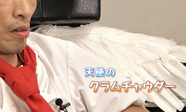シェフの山田浩さんが先ぱいシェフの梅原義教さんに教えてもらって作ったのは、アメリカのボストンで生まれたりょうり「クラムチャウダー」。山田シェフが用意したうつわに、お客さんはびっくり?!そして、梅原シェフの正体は・・・。