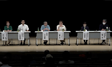 「だれもが地域で自分らしくくらせる社会」の実げんに向けて、3人の来場者の方が発言。これから何をしていけばよいのかをシンポジストが力強く語ります。そして、脱施設に向けて力を合わせることを全ての人へよびかけます。